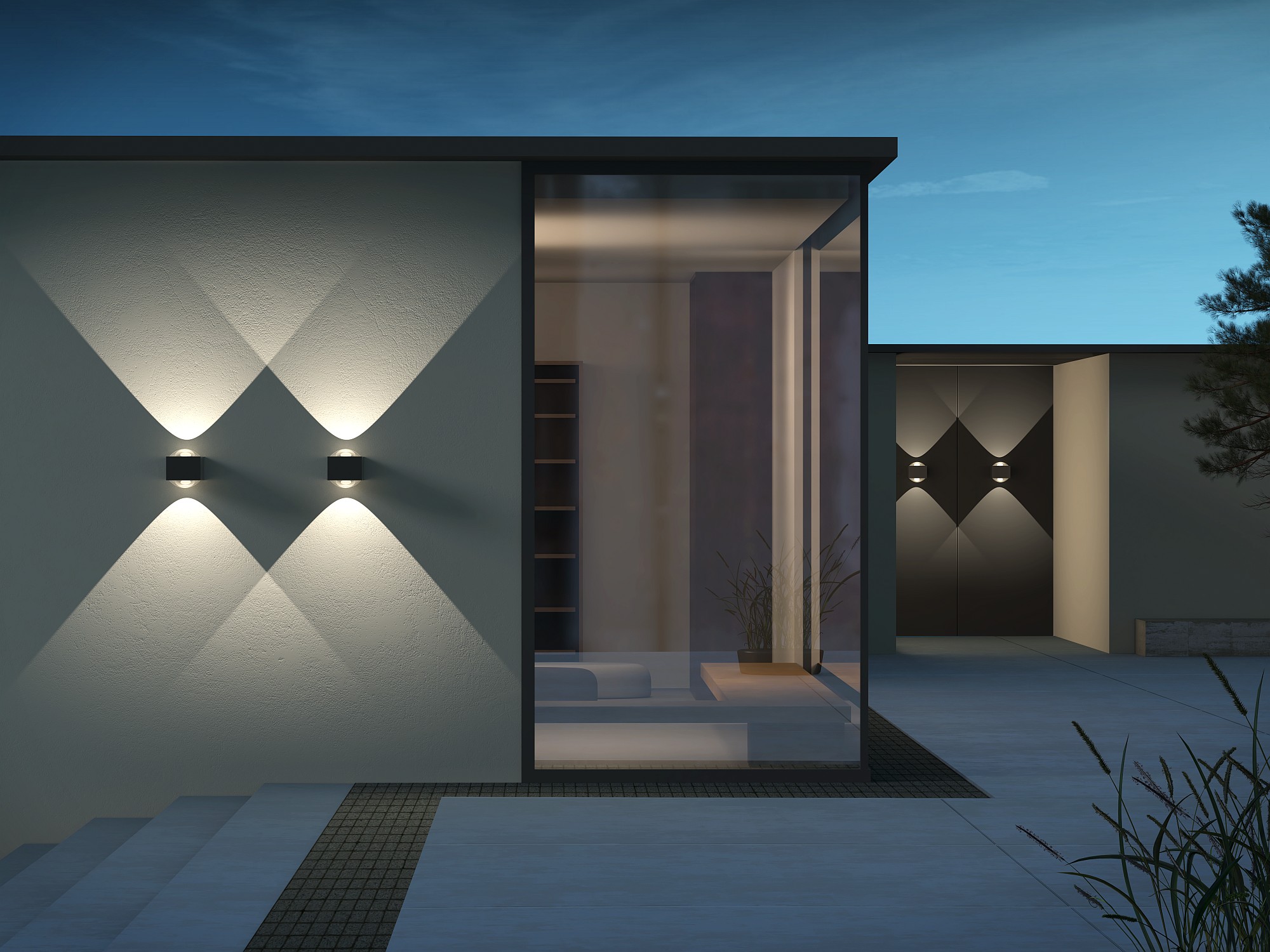 Artikelnummer 5085 EAN 4260277681937 Gewicht inkl. Karton 1,45 kg Höhe 120 mm Breite 110 mm Wandabstand 120 mm Bestückung 2x LED 6,25 Watt, ca. 3000 Kelvin, 2x 625 lm Inklusive Leuchtmittel ja Abstrahlwinkel 80° / 80° Schutzart IP65 Material Aluminium-Druckguss Farbe Graphit Diffusor Glas Spannung 220-240 V; 50/60 Hz - Produktdownloads